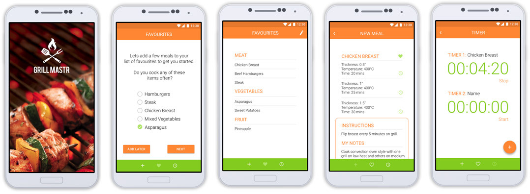 While taking a UXD course at Bitmaker, I designed a conceptual app and experience that allows the user to perfectly time the cooking of food on the barbecue. I researched and identified the various personas that would benefit from using the app and the needs of each one. I then mapped out the customer journey and features, followed by designing the User Interface and branding.